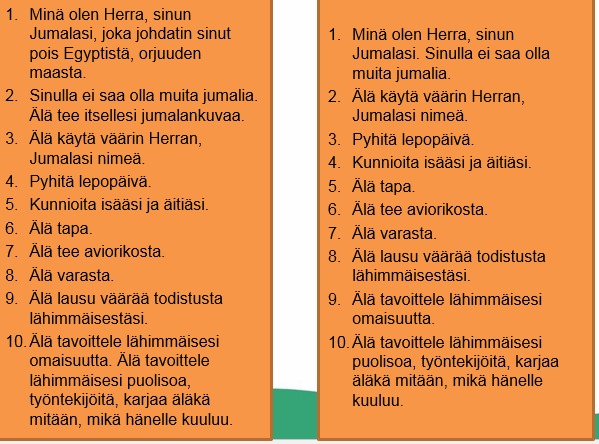 Juutalaisilla ja kristityillä on eri numeroinnit. Kohdissa 2-9 on käskyt eri järjestyksessä.