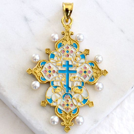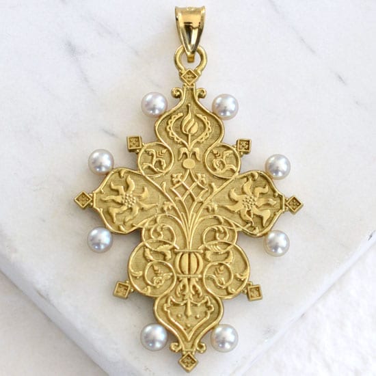 18kt Gold St. Petersburg Cross with Pearls