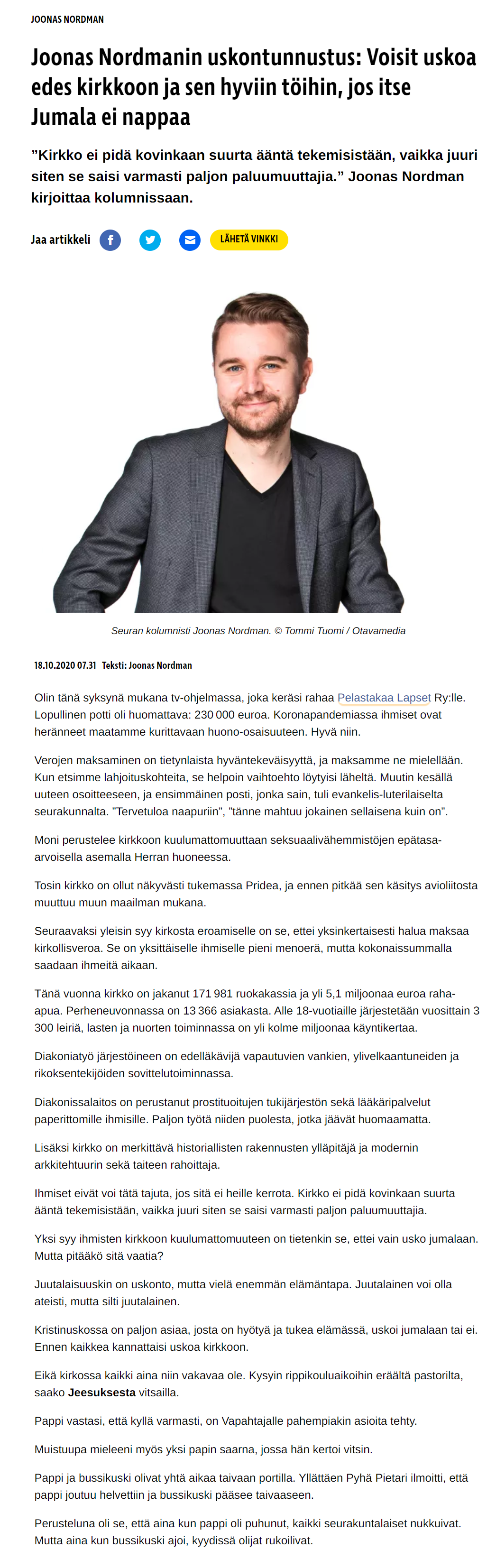 Kuuluisitko kirkkoon, jos vuosittain postilaatikkoon kolahtaisi monen sadan euron lasku?