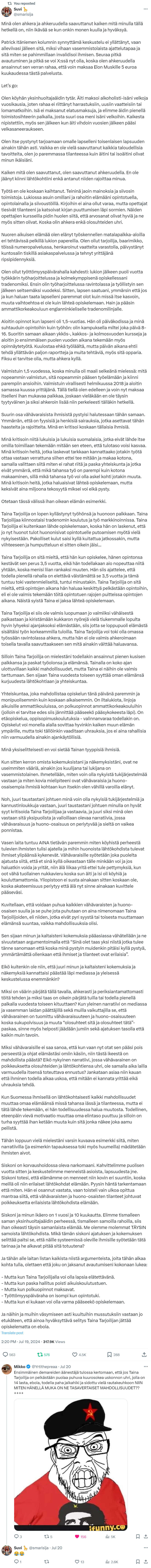 Aika harmillista että tämä poistettiin, sillä tämä viestiketju tiivistää kaikessa rehellisyydessään sen, että miksi työväenluokasta akateemiseen keskiluokkaan luokkahyppäneenä en vaan yksiselitteisesti siedä kuunnella suomalaista työväenluokkaa.